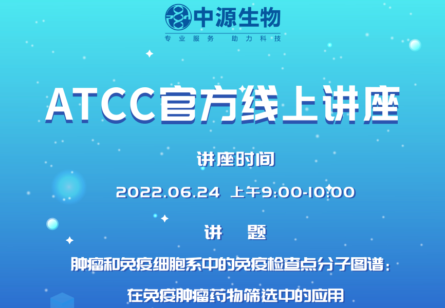 ATCC网络研讨会来啦!尊敬的ATCC用户:您好!我们诚挚的邀请您参加由美国ATCC官方和北京MK(中国)联合举办的有关"肿瘤和免疫细胞系中的免疫检查点分子图谱:在免疫肿瘤药物筛选中的应用"网络研讨会。2022-06-24 15:56:00.0
