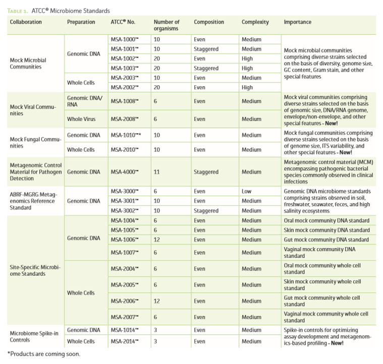 订购ATCC 微生物组学标准品