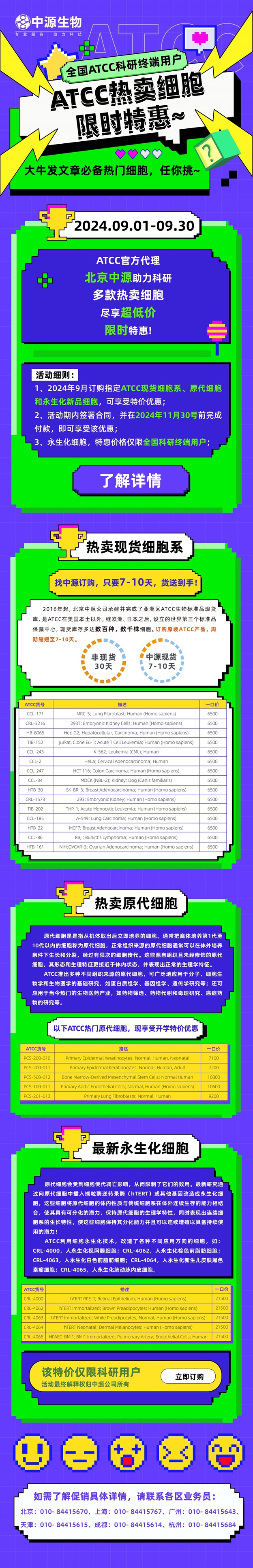 ATCC热卖细胞 限时特惠 | 开学促销 专享一口价