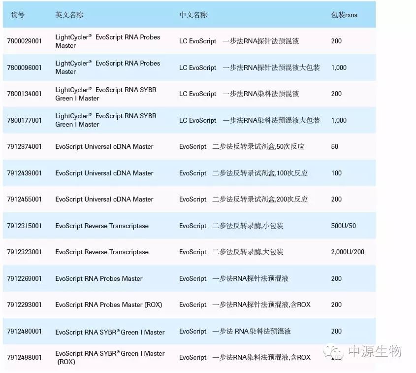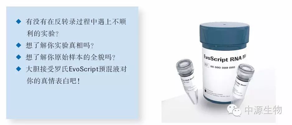 √ 罗氏新一代 EvoScript 预混液, 一个酶完成反转录和荧光定量检测两步实验;