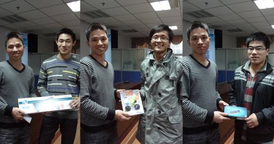 最后,便是激动人心的抽奖环节。除了每一位到场的老师和同学都能获得疯狂的小鸟一只外,我们还现场抽取了迷你键鼠,无线音乐耳机和无线键鼠套装三个大奖,恭喜如下获得大奖的三位幸运儿:
