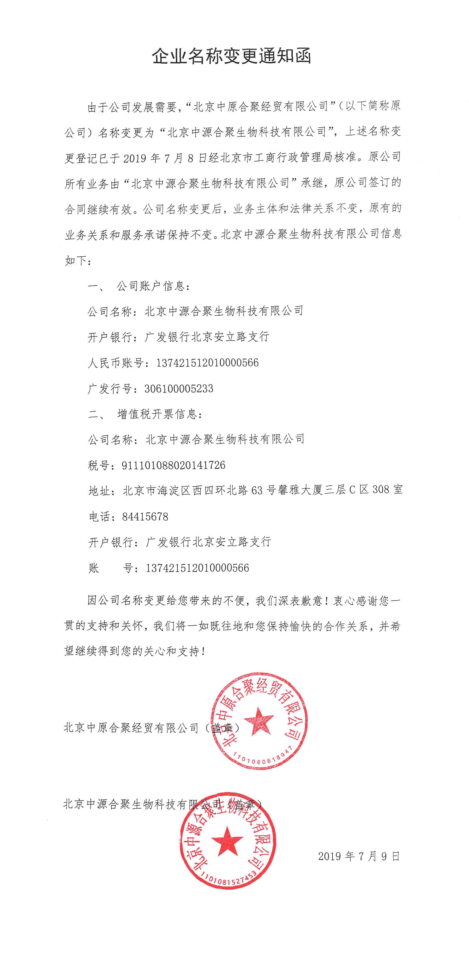 由于公司业务发展需要,“北京中原合聚经贸有限公司”(以下简称原公司)名称变更为“MK网页版”。上述名称变更登记已与2019年7月8日经北京市工商行政管理局海淀分局核准。