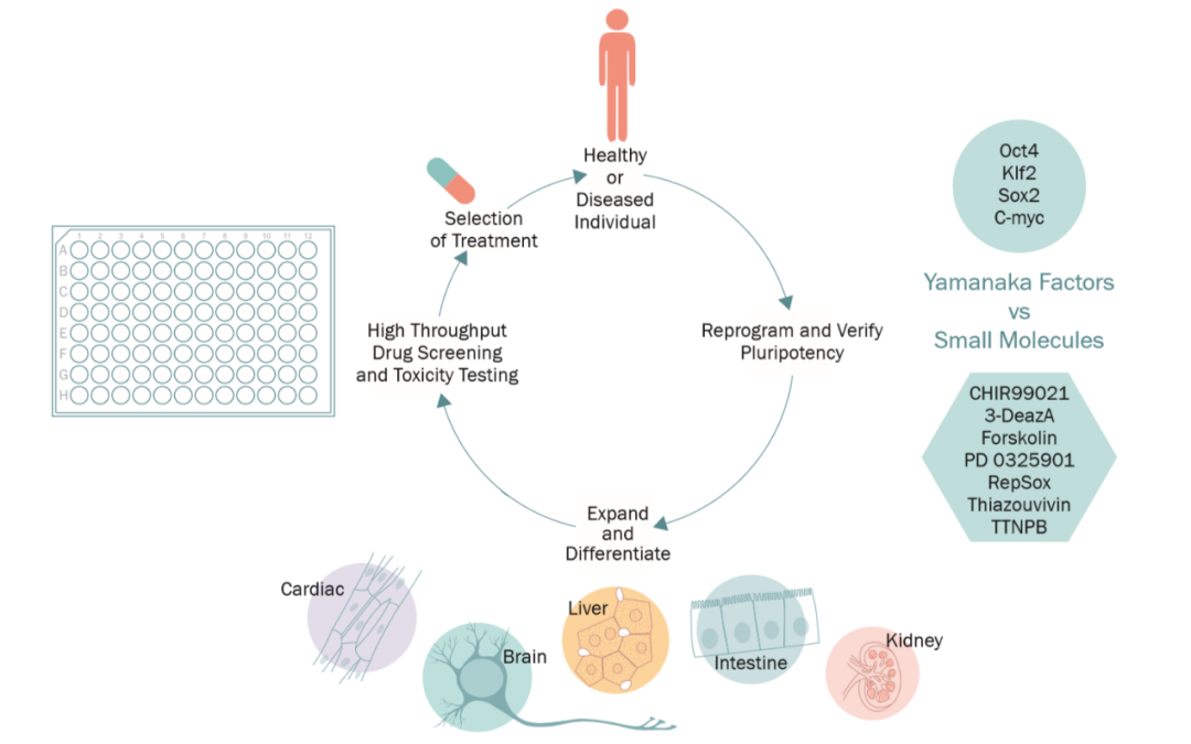 人类胚胎干细胞和诱导多能干细胞被统称为多能干细胞,能够长期自我更新,且可以向三个胚层(内胚层,中胚层和外胚层)的细胞类型分化。这些特性使得它们成为评估药物和有毒化合物的有力工具。