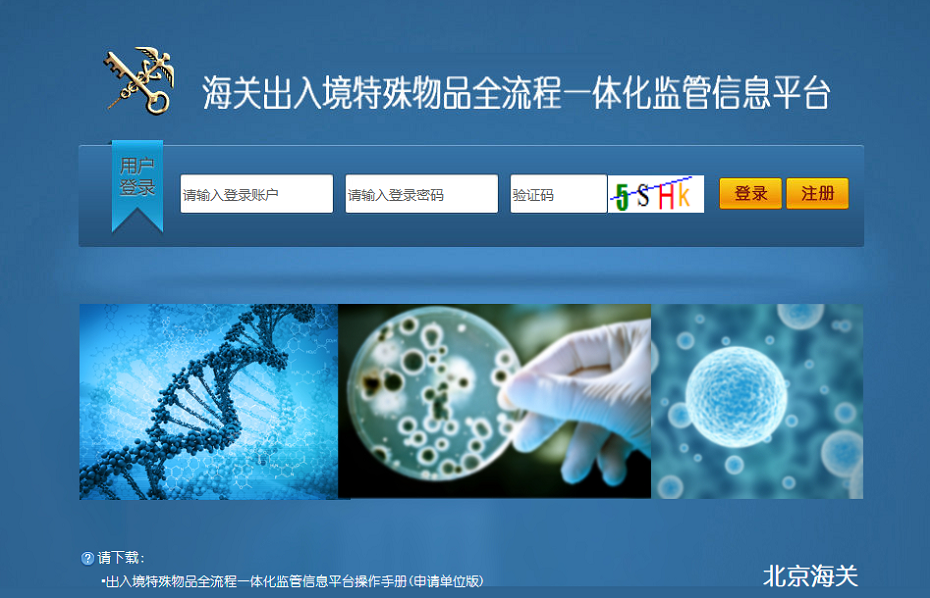 申请人通过海关出入境特殊物品卫生检疫监管系统(国家局平台:https://tswp.customs.gov.cn/loginController.do?login;北京企业通过北京平台:http://bjtswp.customs.gov.cn:8080/Login向所属地海关提出申请)