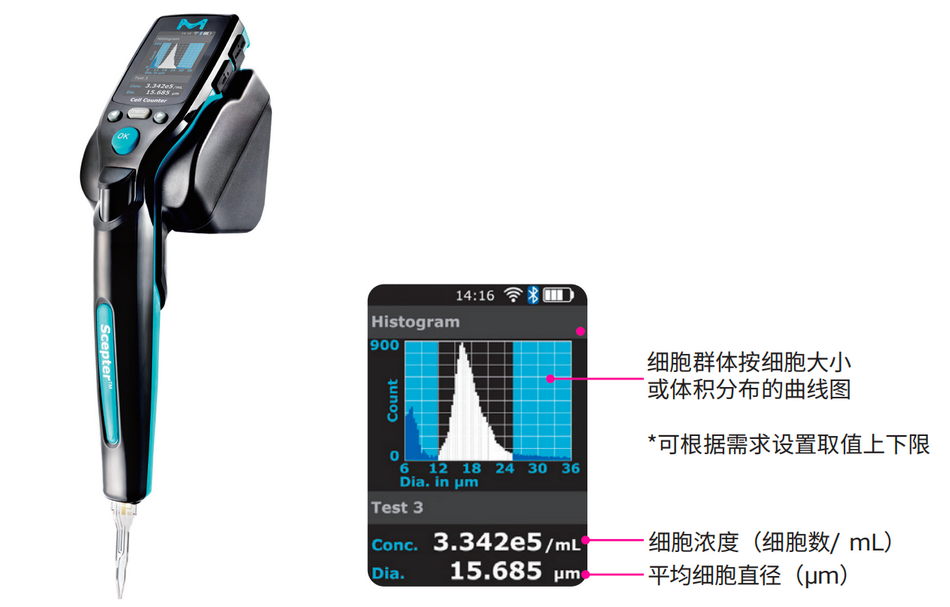 ——Scepter 3.0手持式细胞计数器采用业界公认的“计数金标准”库尔特电阻抗原理,避免基于图像的传统细胞计数方法常见的失真现象;