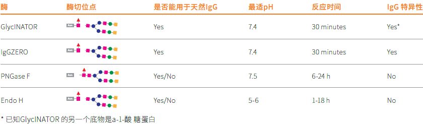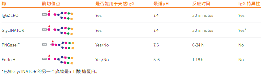 IgGZERO(EndoS)GlycINATOR(EndoS2)快速水解IgG 的Fc 结构域上的N-聚糖。