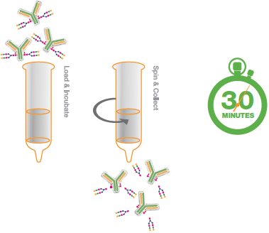 deGlycIT是固定在琼脂糖上的IgGZERO,可以快速和选择性去除Fc上的N-聚糖。提供的离心柱预先填充有固定化IgGZERO,可用于少量甚至高达数百mg抗体的去糖基化。